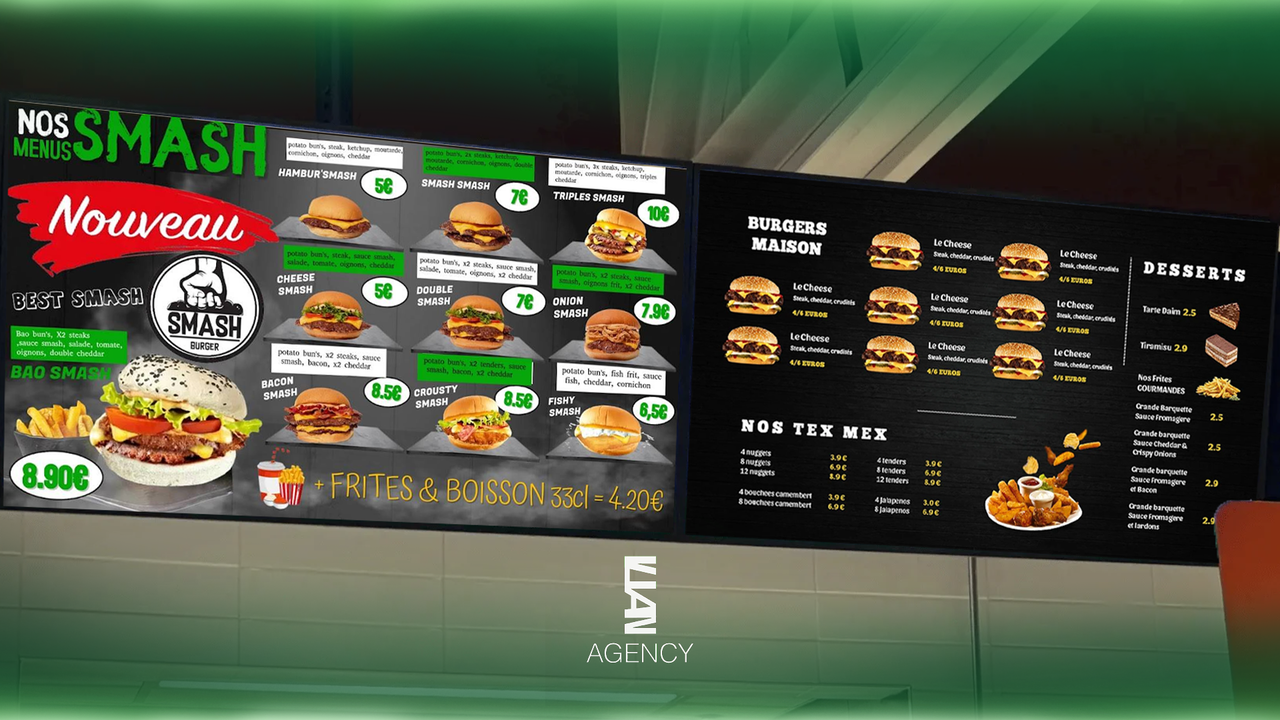 Un Menuboard professionnel et optimisé pour Fast Food.